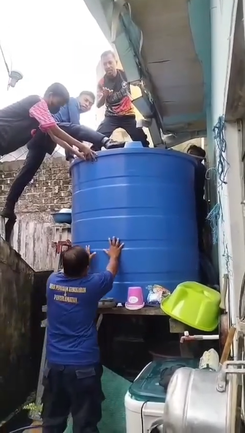 “Petugas langsung berusaha mengangkat korban dari profil air, ternyata beberapa kali dicoba tidak berhasil, lalu salah seorang personel damkar masuk ke profil, kemudian sikorban diminta naik ke punggung anggota damkar dan akhirnya berhasil dievakuasi dengan selamat,” kata Wahyudi.