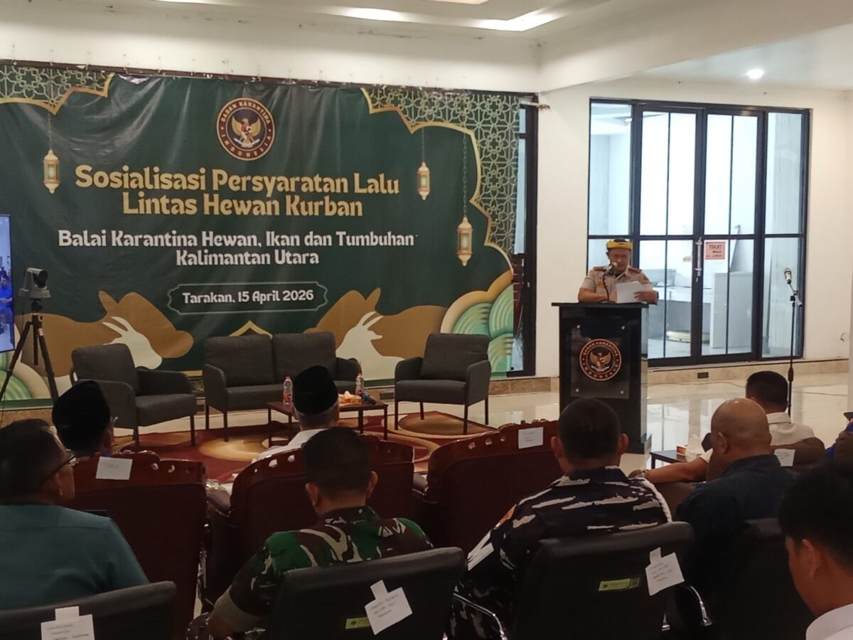 TARAKAN – Menyambut meningkatnya kebutuhan hewan kurban pada Iduladha 2026, Badan Karantina Indonesia (Barantin) melalui Karantina Kalimantan Utara menggelar sosialisasi persyaratan lalu lintas ternak kepada para pemangku kepentingan di Tarakan, Rabu (15/4).