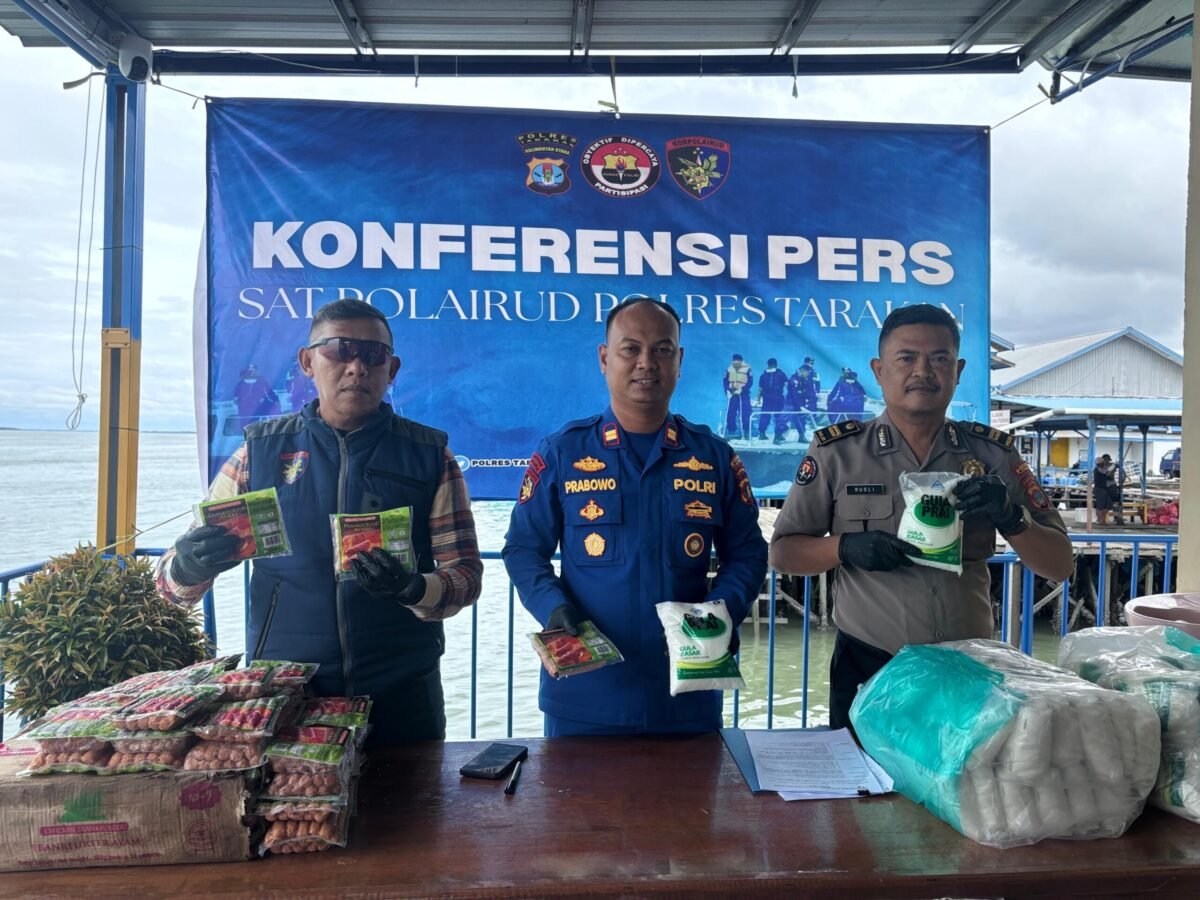 TARAKAN – Upaya penyelundupan produk pangan asal Malaysia tanpa dokumen karantina resmi berhasil digagalkan oleh Satuan Polisi Perairan dan Udara (Sat Polairud) Polres Tarakan. Pengungkapan kasus ini disampaikan dalam konferensi pers pada Jumat (20/02/2026).